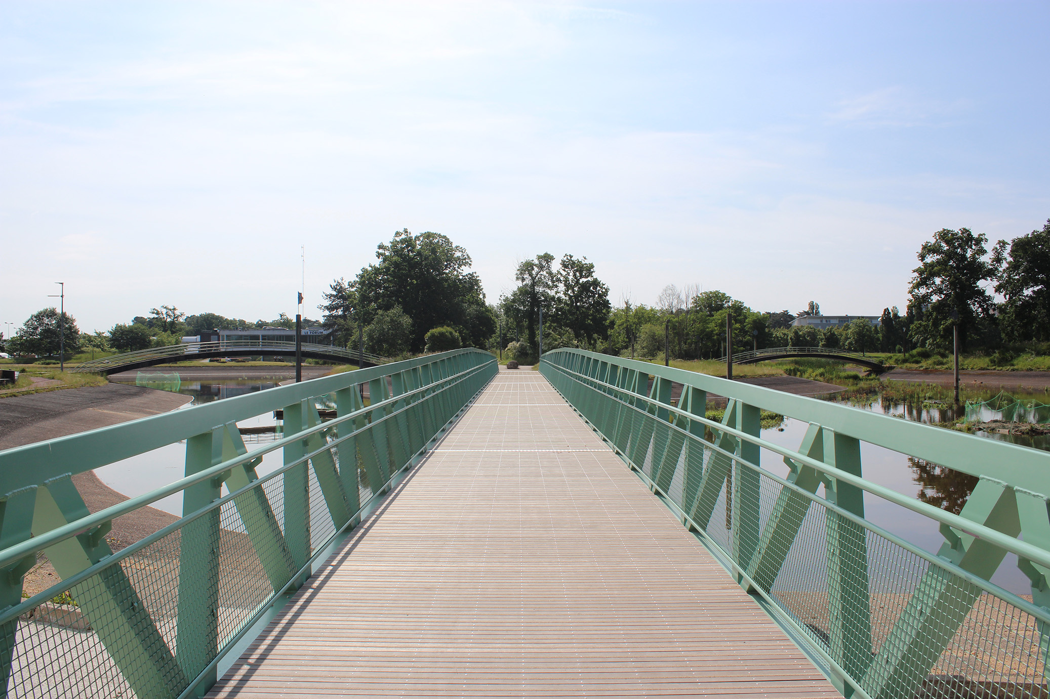 Cette mission consiste en la conception architecturale d’une passerelle piétonne pour remplacer la passerelle en bois existante qui est dans un état très délabré. Cette passerelle est essentielle pour faciliter la traversée du lac artificiel sur le campus de l’université d’Orléans. Ce lac est entouré par le restaurant universitaire – Place du Forum et la faculté de Lettres Langues et Sciences Humaines. Des petites passerelles permettent de franchir ce lac à des endroits très proches de la future passerelle. La nouvelle passerelle sera un élément clé du maillage des liaisons douces au sein du campus.