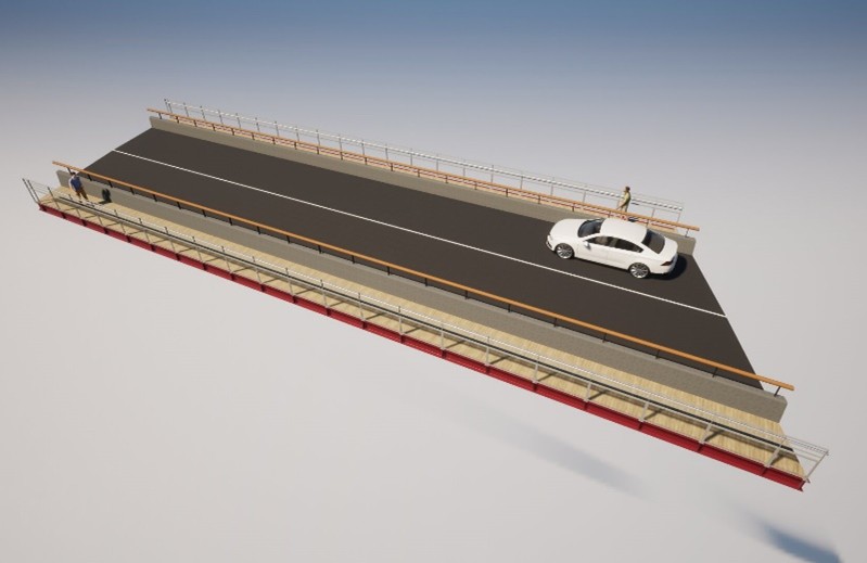 Le projet concerne l’ouvrage aux repère 9+944, qui dessert notamment le cimetière de Rivière-Salée. En ce point le franchissement de la RN5 et son élargissement impose une portée de 30 m.