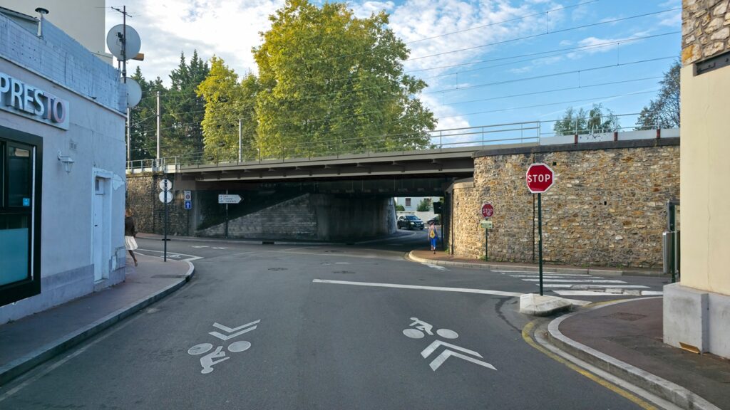L’ouvrage se situe au carrefour de quatre voies routières, qui permettent d’accéder aux appuis des tabliers : Avenue du Beauséjour, Rue du Départ, Avenue Gavignot, Chaussée Jules César.