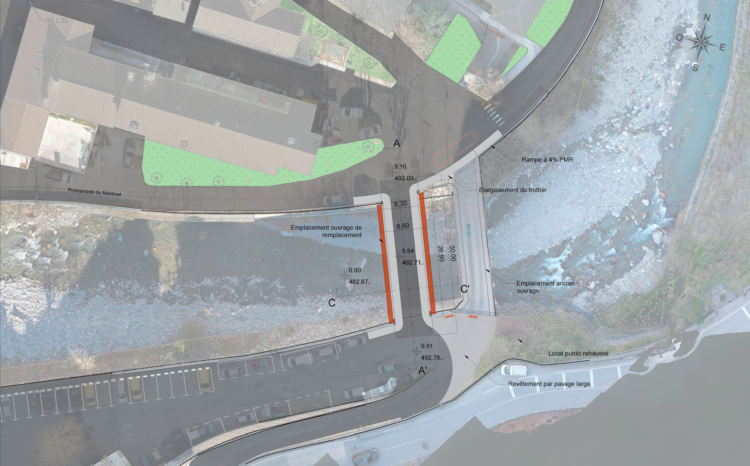 Ce projet concerne la sécurisation du collège de Saint-Sauveur-sur-Tinée contre les crues de la rivière Tinée. L’opération consiste à remplacer le pont voûte en maçonnerie par un pont de 27 m de portée pour supprimer le verrou hydraulique actuel. L’ouvrage franchis la rivière de la Tinée au centre-ville de Saint-Sauveur. L’objectif de la conception de ce pont est de répondre à la problématique hydraulique mais aussi de créer une continuité entre les rives, ce qui permet de favoriser les échanges tout en améliorant le cadre de vie des habitants.
